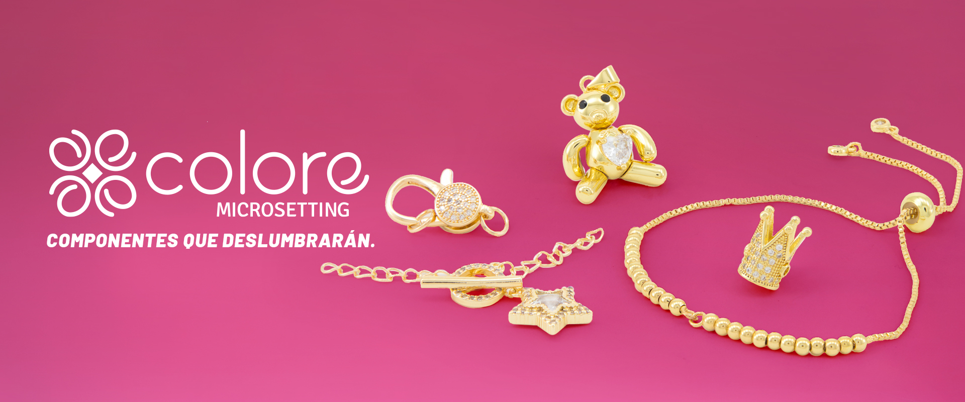 Adéntrate en el fascinante mundo del Microsetting con Colore, donde encontrarás conectores, separadores y dijes con circonias diminutas, perfectamente alineadas para que diseñes joyas únicas. ¡Deja que tu creatividad brille con la calidad excepcional de Colore!